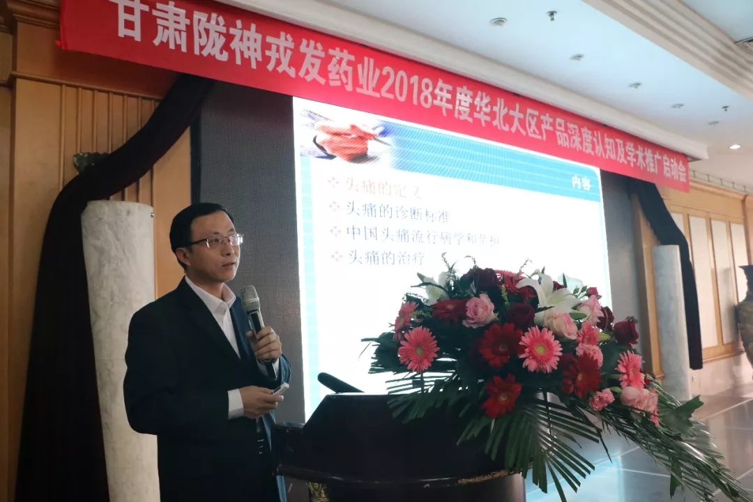 隴神戎發董事、總經理康永紅先生為本次大會致辭。康總經理介紹了被譽為“河岳根源、羲軒桑梓”的甘肅省,作為中醫藥文化的發祥地,盛產的多種中藥材享譽海內外。康總經理回顧了隴神戎發從建廠到現在一步一個腳印走來所獲得的諸多科技、質量獎項,以及公司從2018年實施營銷改革,設立營銷大區,加強省區建設以來收到的良好效果。康總經理表示,下一步隴神戎發將借助現有的一系列的政策優勢以及上市公司的平臺,整合資源優勢,秉持市場需求,升級學術推廣的深度、細度和高度,助力元胡止痛滴丸的臨床推廣,全力將元胡止痛滴丸打造成一個具有高科技含量的中藥大品種,將隴藥好品種做大做強,在以后的工作中隴神戎發愿與各位合作伙伴精誠合作、共贏未來!