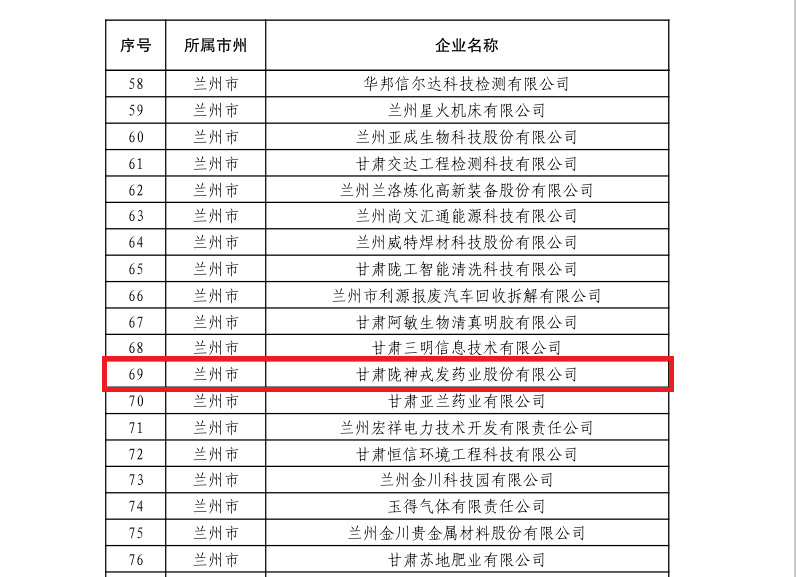 近日,甘肅省工業(yè)和信息化廳發(fā)布了關(guān)于2023年度第一批創(chuàng)新型中小企業(yè)名單,隴神戎發(fā)成功入選該名單。