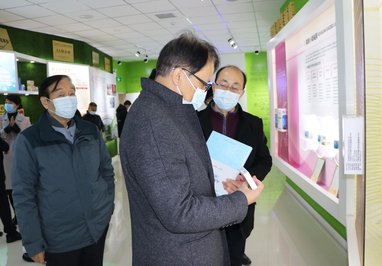 在隴神戎發制劑大樓,公司董事、副總經理兼董事會秘書元勤輝向朱梓陽總裁一行介紹了隴神戎發的產業結構、生產規模、職工隊伍等基本情況,并重點圍繞公司創建設立、股份制改造、增資擴股、深交所創業板上市、直至并入甘肅藥業集團等重大事件,詳細介紹了公司的改革發展歷程。隨后,在元勤輝副總的陪同下,朱梓陽總裁一行饒有興致地參觀了公司產品陳列室,并就元胡止痛滴丸、七味溫陽膠囊及鞣酸小檗堿膜等產品的優勢特點和市場應用情況,以及麻杏止咳膠囊和宣肺止嗽合劑兩個止咳類產品的差異化特點與現場陪同人員進行了交流。