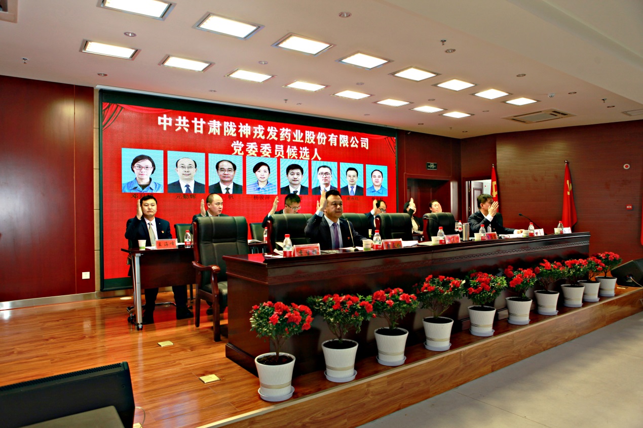 2019年3月14日,甘肅隴神戎發(fā)藥業(yè)股份有限公司第一次黨員大會(huì)暨黨委、紀(jì)委選舉大會(huì)圓滿完成各項(xiàng)議程勝利閉幕。公司全體黨員和特邀人員共90余人參加大會(huì)。此次大會(huì)邀請(qǐng)西北永新集團(tuán)黨委書(shū)記、董事長(zhǎng)康海軍,黨委副書(shū)記、紀(jì)委書(shū)記成炳彥,黨委組織部部長(zhǎng)、人力資源部部長(zhǎng)王宏武,黨委宣傳部部長(zhǎng)、黨委辦公室副主任李生祥等領(lǐng)導(dǎo)蒞臨會(huì)議現(xiàn)場(chǎng)指導(dǎo)。