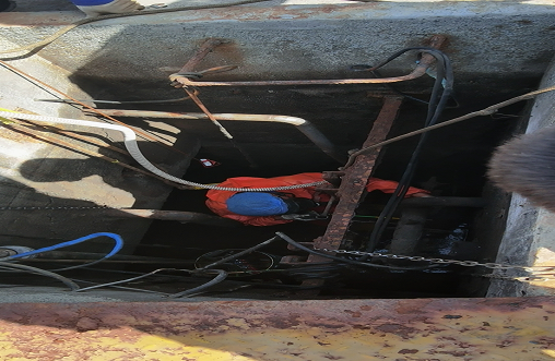 清理完污水池后,設(shè)備工程部對(duì)部分設(shè)備設(shè)施進(jìn)行維修更換,面對(duì)刺鼻的氣味和空間狹小、天氣熱的困難,設(shè)備工程部從領(lǐng)導(dǎo)干部到普通職工,大家爭先表達(dá)出下井作業(yè)的強(qiáng)烈意愿。但考慮到安全因素,還是決定由受過安全培訓(xùn)且更有經(jīng)驗(yàn)的人員來實(shí)施。黨員干部王洋身先士卒,帶領(lǐng)袁國田、陳振剛交替下井作業(yè)。炎炎烈日下,剩下的人也加入到協(xié)助下井維修的隊(duì)伍當(dāng)中,有幫著遞工具的,有幫著遞水的,有幫著下井人員穿防護(hù)服的,大家齊心協(xié)力,互幫互助,攻堅(jiān)克難,圓滿順利的完成了這次頗具挑戰(zhàn)的維修任務(wù)。