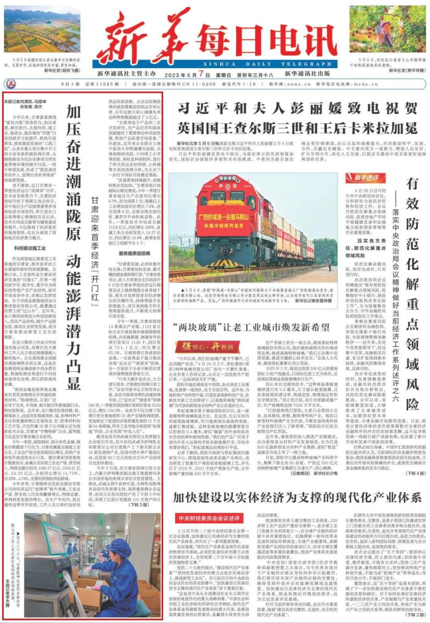 “發展質效持續提升,動能轉換步伐加快。”甘肅省統計局副局長顧克勇說,今年一季度甘肅省地區生產總值同比增長6.7%,居全國第5位,規模以上工業增加值同比增長7.8%,居全國第6位,總體呈現全面向好、量質齊升的積極態勢。此外,一季度技術市場成交額113.9億元,同比增長395%,省屬工業企業研發投入24.27億元,同比增長16.9%,新增省部級以上創新平臺3個。