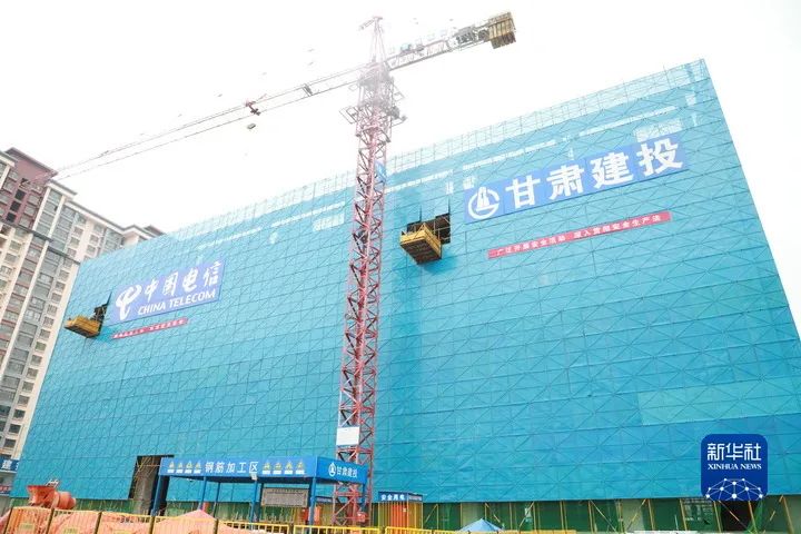 2023年2月21日,中國電信甘肅公司慶陽大數據中心封頂。