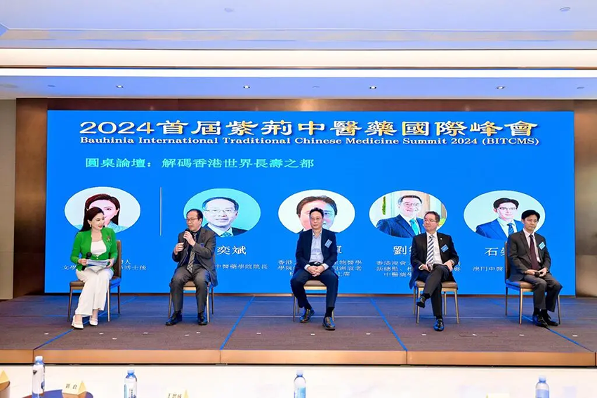 其后,香港大學中醫藥學院院長馮奕斌,香港大學醫學院生物醫學學院終身教授、亞洲衰老研究學會創會主席周中軍,香港浸會大學暫任首席創新總監、校長資深顧問暨中醫藥學院榮譽教授劉樂庭,澳門中醫藥學會會長石崇榮圍繞“解碼香港世界長壽之都”主題展開探討。