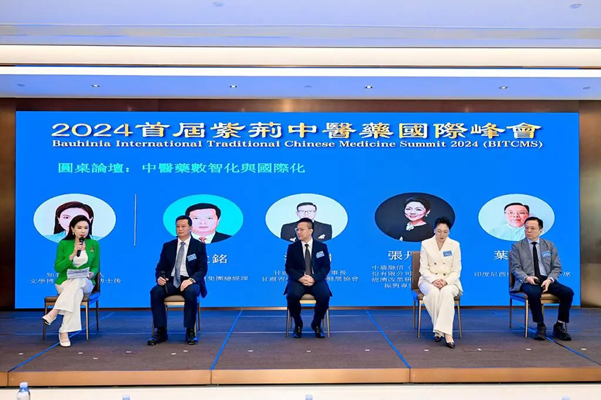 在主題圓桌論壇環節,甘肅藥業投資集團總經理竇生銘,甘肅華隴和創董事長、甘肅省中醫藥產業發展協會創始人潘國瑞,中農融信(北京)科技股份有限公司董事長、中國經濟改革研究基金會鄉村振興專委會秘書長張丹丹,印度尼西亞盛康中醫院主席葉富豪等圍繞“中醫藥數智化與國際化”進行討論。