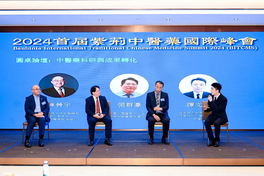 在分論壇暨項目路演環節,英國皇家化學院院士、候選加拿大皇家科學院院士、上海交通大學國家重點實驗室長聘教授魏冬青,香港生產力促進局綠色生活與創新部生命科技及中藥高級顧問梁寶鈞,澳門大學中華醫藥研究院、中藥質量研究國家重點實驗室副教授趙靜,香港生產力促進局中醫藥發展基金主管鄭智仁,國家超級計算長沙中心副主任、長江學者彭紹亮,北京中醫藥大學原校長、中山大學香港高等研究院院長徐安龍等來自內地、港澳臺、海外的專家學者、企業家等齊聚一堂,就中醫藥成果展示、重點研發項目招商路演、投資機構對接洽談、名優中醫藥產品推介等議題進行了深入交流和合作洽談,向與會嘉賓展示了自己中醫藥研發成果,為中醫藥產業的合作與發展提供了新的機遇。