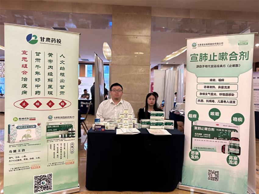甘肅藥業投資集團有限公司攜元胡止痛滴丸、宣肺止嗽合劑、麻杏止咳膠囊、七味溫陽膠囊、斯娜格藥膜、黃芪當歸膠囊、復方丹參片等特色隴藥產品亮相此次盛會,并在會場展區設置展臺宣傳。