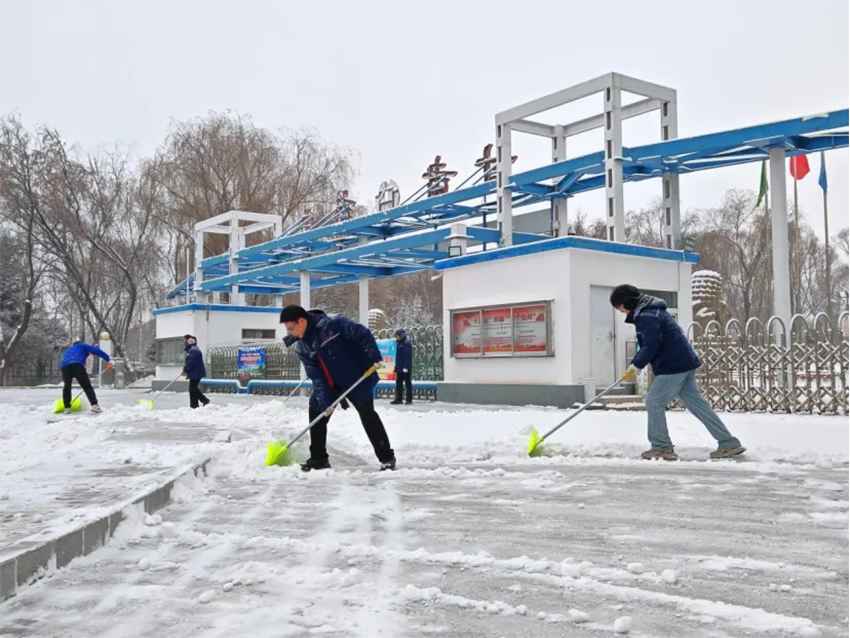 公司領導班子成員以身作則,拿起鐵鍬、掃帚,帶領分管部門員工奔赴分擔區域。各黨支部書記、部門負責人沖鋒在前,黨員、團員青年踴躍參與,大家不畏嚴寒、分工協作,全力清理主干道、倉庫通道、辦公樓前、食堂周邊及停車場等重點區域積雪。掃雪現場氣氛熱烈,叮叮當當的鏟雪聲與歡聲笑語交織。有的用力鏟除壓實冰層,有的仔細清掃殘余碎雪,有的負責轉運積雪。老員工經驗豐富,負責指導安全除冰;年輕員工體力充沛,主動承擔重活。大家默契配合,在寒冷天氣中干得滿頭大汗,廠區各主干道和關鍵連接通道迅速恢復暢通,為物流車輛通行和員工安全行走創造了條件。