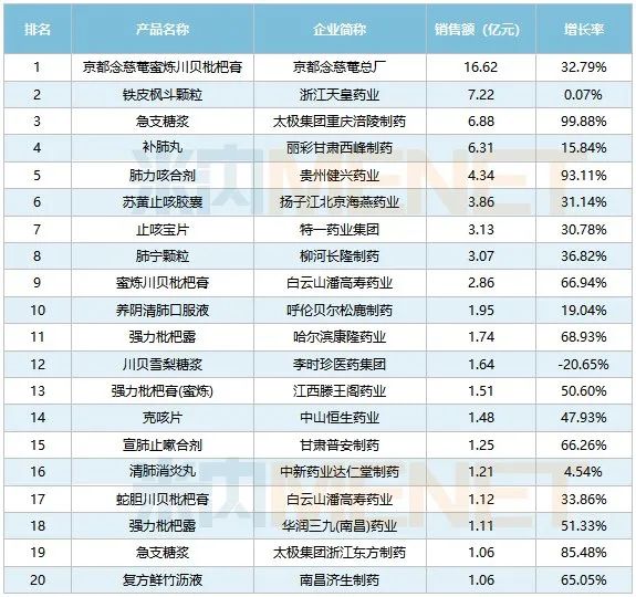2022年中國公立醫療機構終端止咳祛痰平喘中成藥品牌TOP10