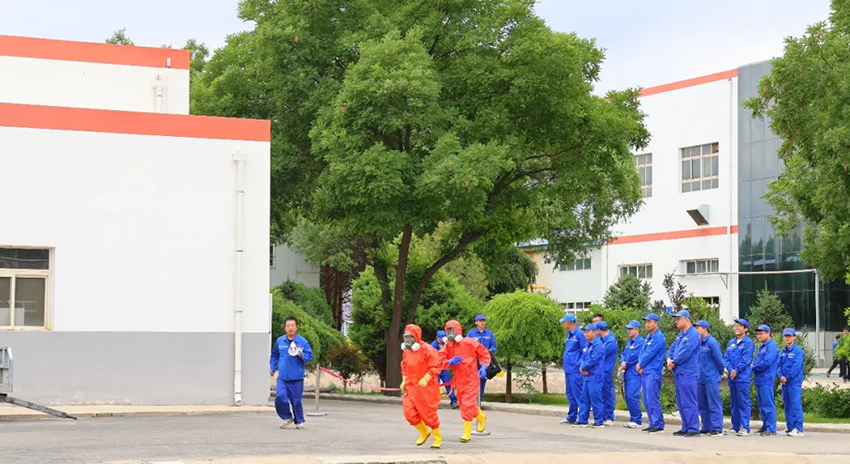 “報告!乙醇罐區10號儲罐出口管線泄漏,遇靜電引發火情,火勢正向相鄰罐區蔓延!罐區2名巡檢人員被困!”6月24日下午15時21分普安制藥廠區內警報驟響,一場以“查隱患、強應急、保安全”為主題的2025年“人人講安全 個個會應急——查找身邊安全隱患”系列活動實戰演練正式啟動。公司安全管理部聯合提取車間及涼州區消防中隊,約80名員工參與。一場“全鏈條、全要素、全場景”的安全應急大考就此展開。