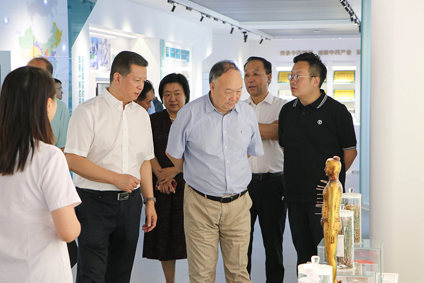 在公司展廳參觀過程中,段金廒教授一一了解了公司特色產(chǎn)品。每到一處,段金廒教授總能結(jié)合自己的研究方向,與大家交流產(chǎn)品的功能特色和處方藥材資源,并饒有興致地現(xiàn)場(chǎng)講解了公司獨(dú)家品種元胡止痛滴丸所用的“延胡索”藥材的產(chǎn)地演變歷史及資源現(xiàn)狀。段金廒教授強(qiáng)調(diào),企業(yè)要注重藥材種子種苗培育和產(chǎn)地管理,從源頭上確保藥品質(zhì)量;要圍繞重大疾病和慢性病,結(jié)合在研的醫(yī)療器械,配套研制中藥類相關(guān)新產(chǎn)品,逐步形成產(chǎn)業(yè)優(yōu)勢(shì)。