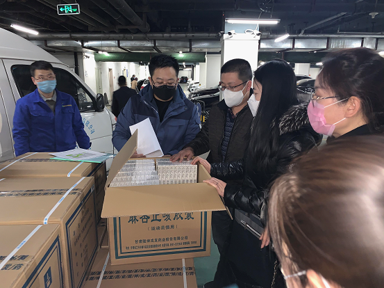甘肅省紅十字會、甘肅省藥品監督管理局工作人員,現場對甘肅隴神戎發藥業股份有限公司捐贈的藥品進行檢測并確認。