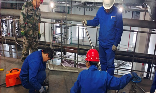 此次生產線改造項目,面對改造時間緊、任務重的雙重挑戰,提取車間與設備工程部、設備生產廠家緊密對接,提前規劃工藝流程圖、嚴謹設計線路管道、精密測繪對接位置,確保設備從運輸到安裝各個環節有條不紊的進行。同時,在設備安裝過程中始終把安全生產放在第一位,在安全環保部的全程指導監督下,嚴格按照《安全生產法》做好隔離措施和安全防護,確保施工現場自始至終都在有效的安全環境中進行。車間全體人員更是勇于擔當,不怕苦、不怕累,每天平均12個小時奮戰在改造項目一線,忙碌的身影隨時出現在切割機作業及重型設備吊裝作業等施工現場,充分發揚“五加二、白加黑”的奉獻精神,大家一邊開展設備維護保養,一邊進行設備安裝,再次用實際行動深入全面的詮釋了“敢干事、會干事、能干成”的“宣肺精神”。