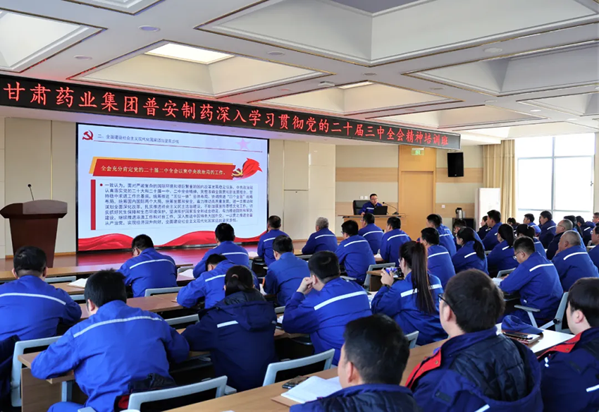 近期,甘肅藥業(yè)集團(tuán)采取現(xiàn)場(chǎng)授課、視頻講座、互動(dòng)交流、“三會(huì)一課”等多種形式,對(duì)集團(tuán)公司中層及以下黨員干部全覆蓋、無(wú)盲區(qū)、分階段組織開(kāi)展學(xué)習(xí)貫徹黨的二十屆三中全會(huì)精神輪訓(xùn),迅速掀起了學(xué)習(xí)宣傳、貫徹落實(shí)黨的二十屆三中全會(huì)的熱潮。參訓(xùn)人員達(dá)到300余人次。