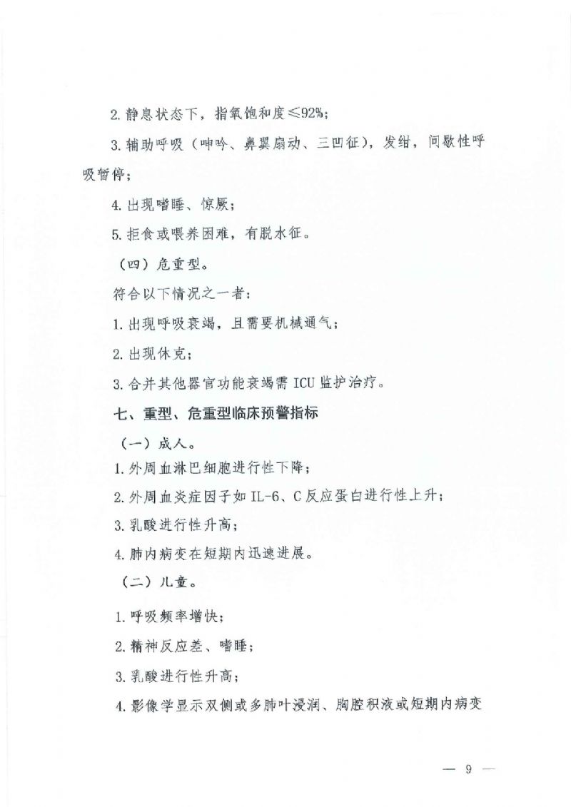 七、按照成人和兒童分別增加“重型、危重型臨床預警指標”