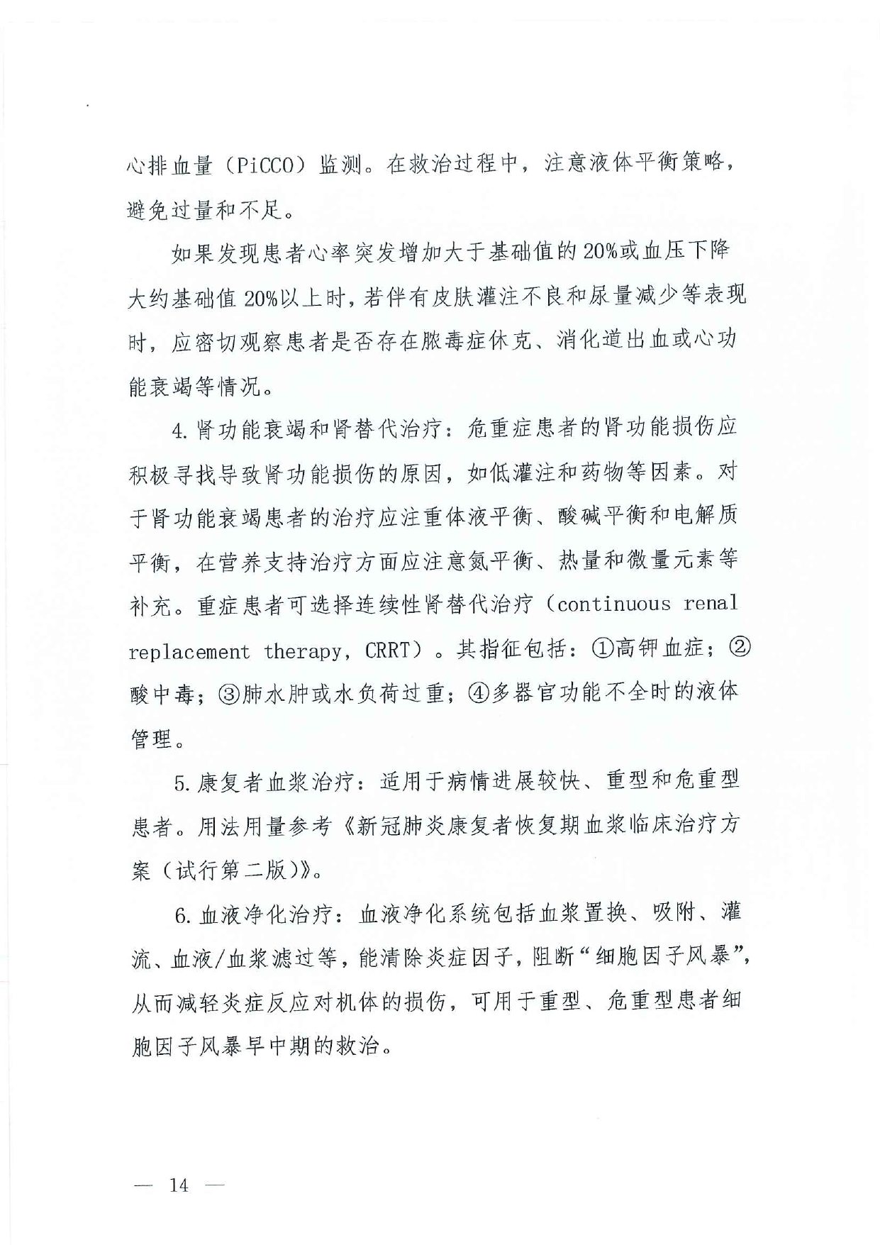 5.對重型、危重型患者存在細胞因子風暴的,為清除炎癥因子,阻斷“細胞因子風暴”,增加“血液凈化治療”。