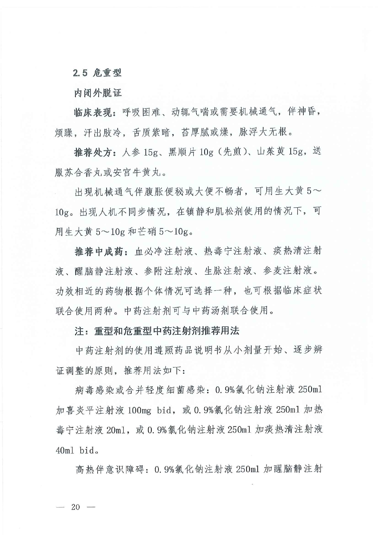 (四)中醫治療增加了危重型出現機械通氣伴腹脹便秘或大便不暢,以及人機不同步情況下的中藥使用。