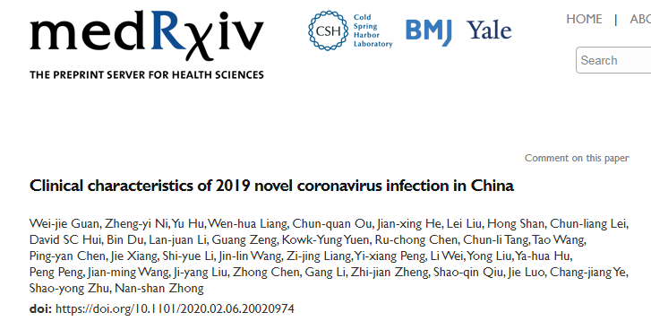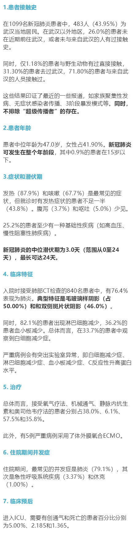 2020-02-09日鐘南山院士團隊在medRxiv在線發表了目前為止,有關新型冠狀病毒感染最大樣本量的臨床研究,分析了來自全國31個省/直轄市的522家醫院共計1099例新型冠狀病毒感染患者的臨床特征。公共衛生信息編輯部將主要研究結果總結分享,為臨床醫師診治新型冠狀病毒感染提供參考。