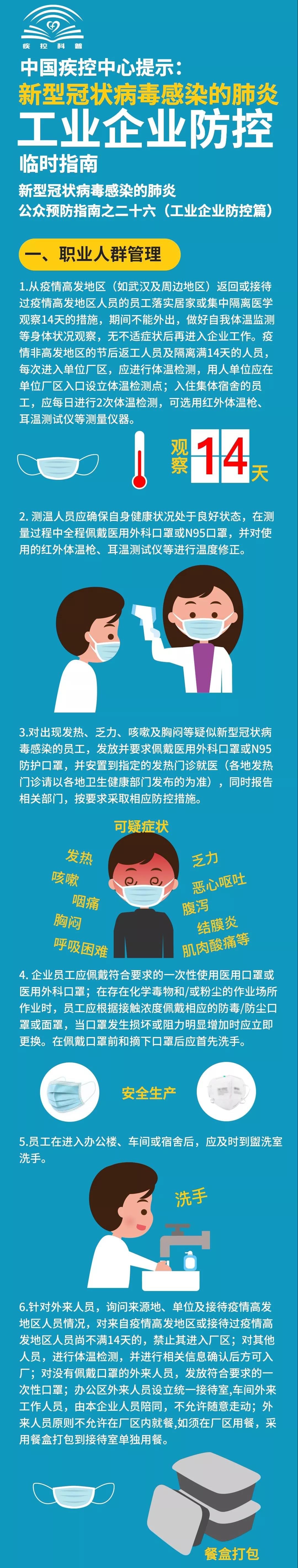 中國(guó)疾控中心提示:工業(yè)企業(yè)防控(工業(yè)企業(yè)防控篇)