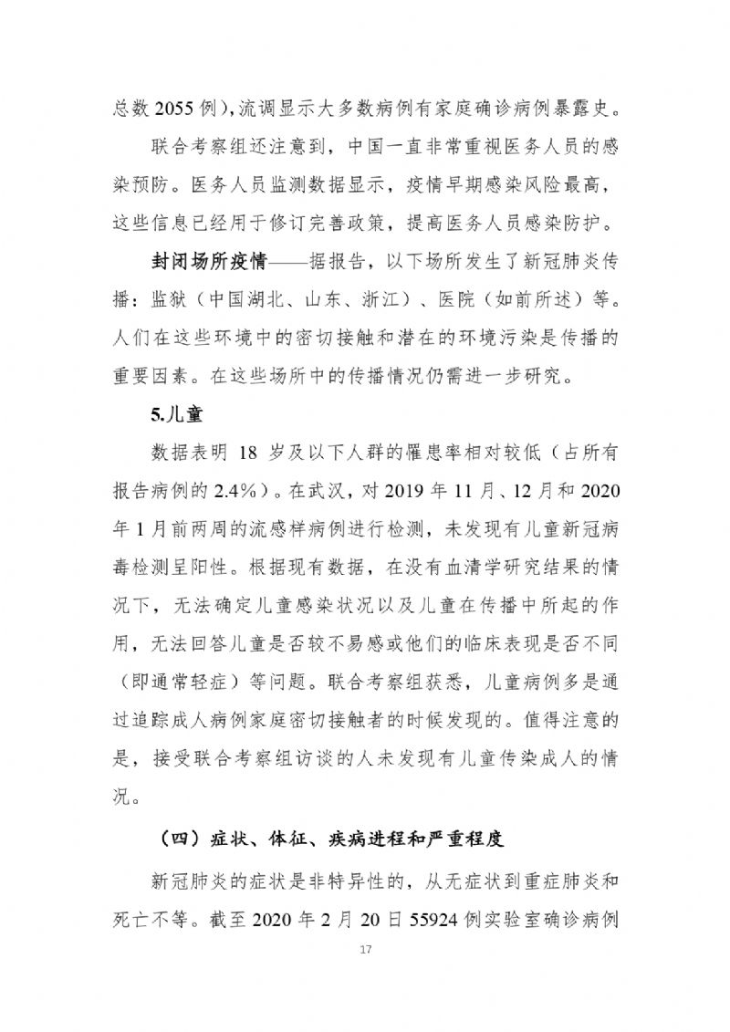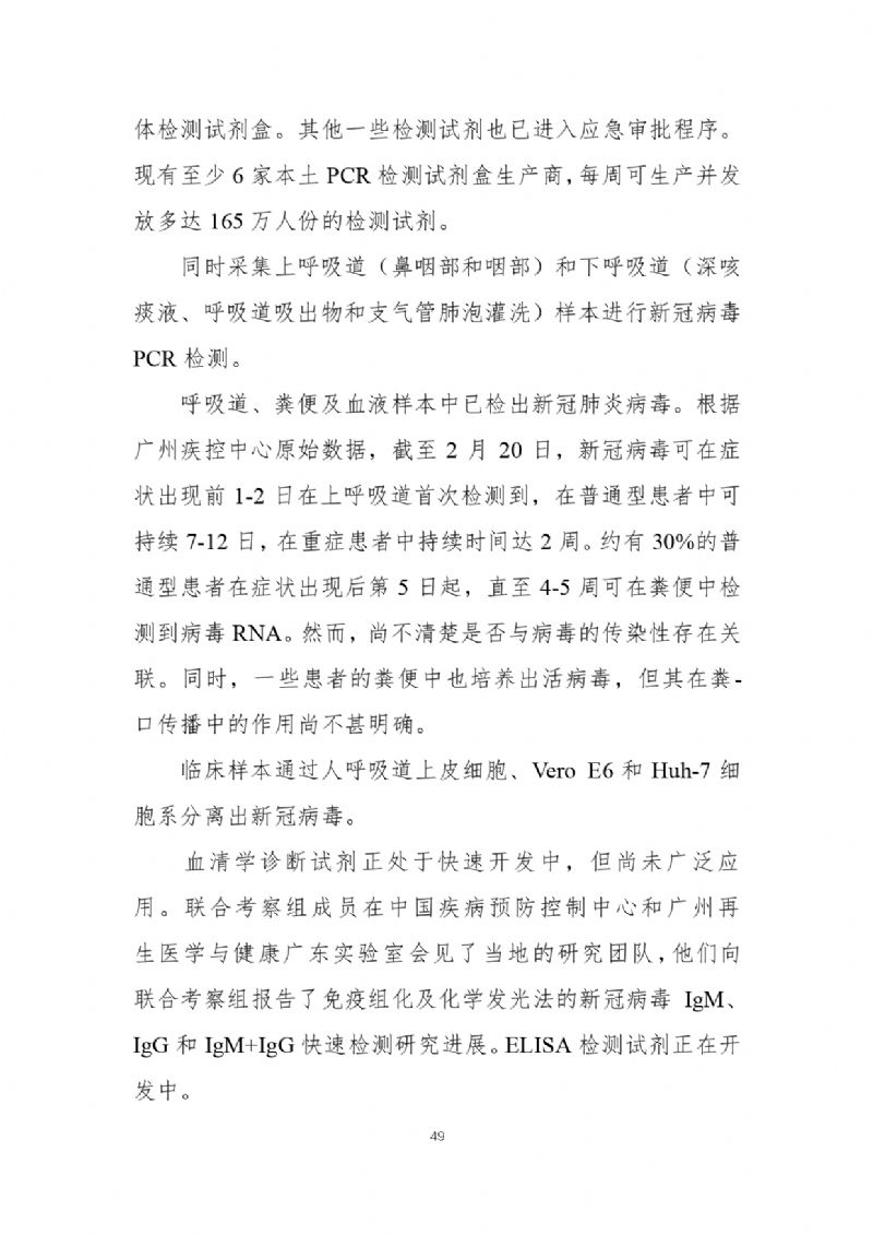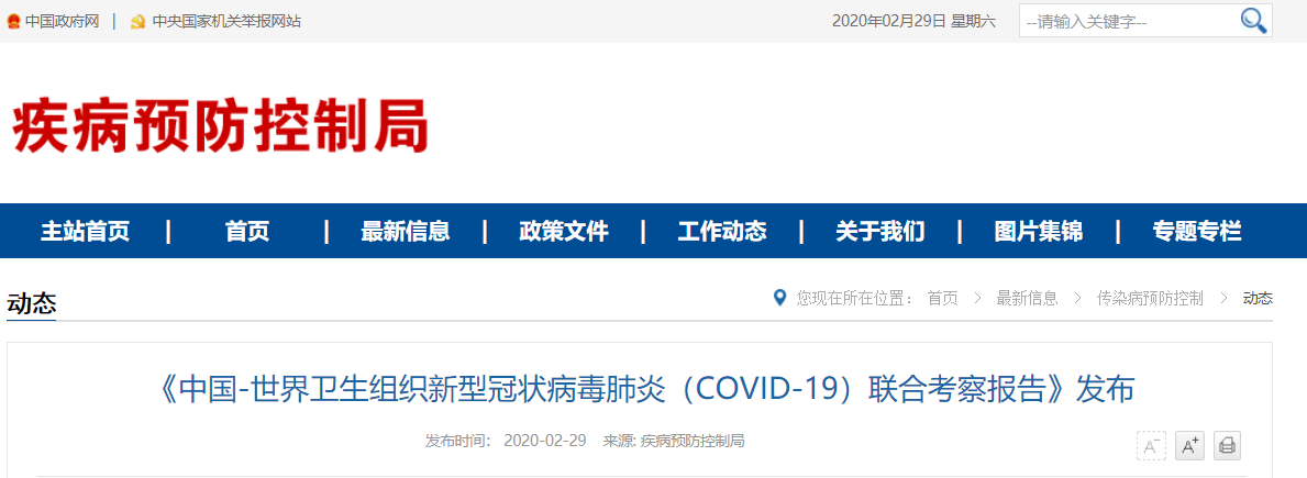 2月29日,國家疾病預防控制局發布《中國-世界衛生組織新型冠狀病毒肺炎(COVID-19)聯合考察報告》,對重視問題、主要發現、中國和全球應對措施及下一步工作進行了闡述,并且公布了部分實驗室檢驗、診斷與病毒學、研發等方面詳細的技術調查結果。