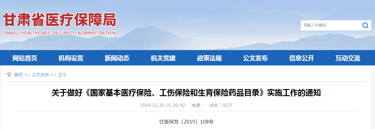 甘肅省醫療保障局 甘肅省人力資源和社會保障廳