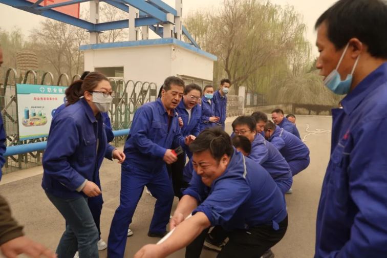開幕式結(jié)束后,普安、普華拔河友誼賽火熱開賽。縱使今天黃沙漫漫,陰陰沉沉,但雙方選手的熱情沒有受到絲毫影響。賽場上參賽隊員奮勇拼搏,賽場邊圍觀觀眾搖旗吶喊,氣氛好不熱烈!