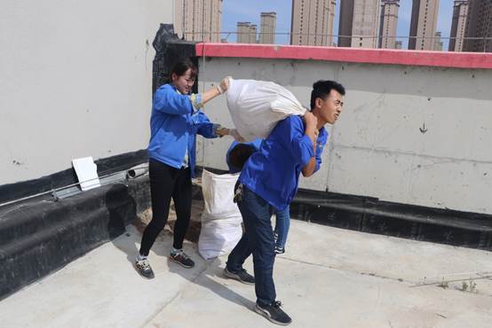 廠區樓頂的泥土、石子、塑料等下雨天被雨水沖刷后,容易堵塞樓頂排水口,存在安全隱患。所以此次清理活動,主要針對樓頂環境衛生、衛生死角進行了集中清理。活動開始后團總支將已準備好的鐵鍬、簸箕、掃帚等工具分發到各小組,所有人登上樓頂,發揮不怕苦、臟、累的精神,積極地清理石子、泥土、雜物等垃圾。利用廢棄的編織袋來裝運,即節省了物資,又能二次利用。