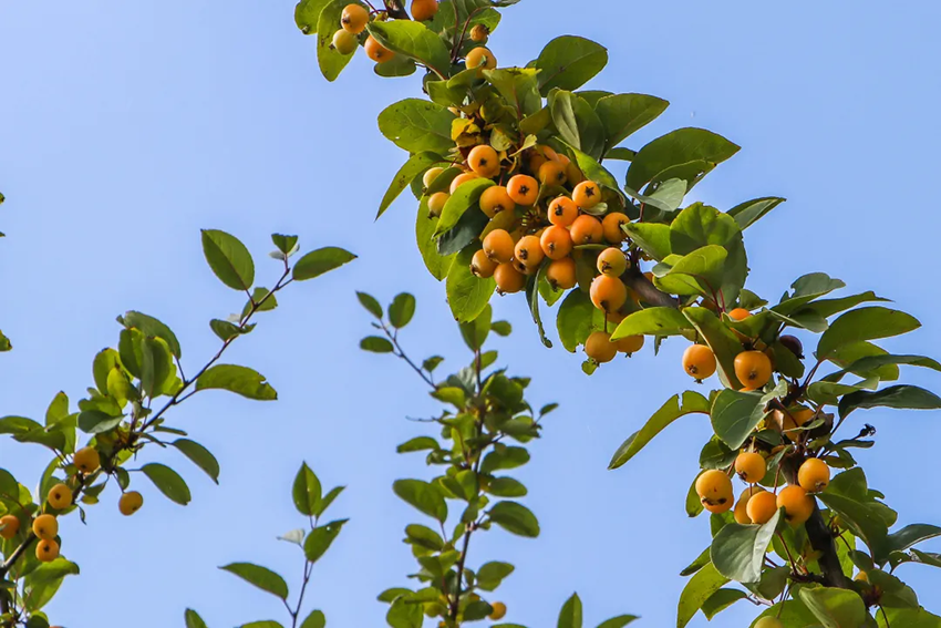 廠區角落,金黃的銀杏果綴滿枝頭,紅海棠與黃海棠交錯生長,果實如瑪瑙般綴滿枝椏,為秋日的廠區添一抹活潑的亮色。這些果實不張揚,卻以最本真的姿態,詮釋著“豐收”的另一種模樣——不必碩果累累,只要自然生長,便是對歲月最好的回應。